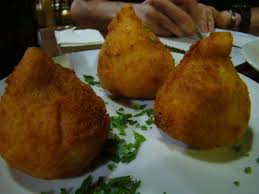 Ao olhar para o lado observei que a senhora tinha em seu prato, três enormes coxinhas de galinha com recheio de catupiri e um copo de suco de 700 ml de refrigerante.